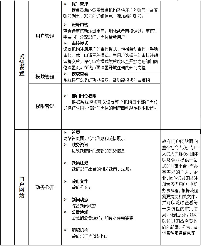 首(shou)頁(ye)、政(zheng)(zheng)務(wu)(wu)資訊(xun)、政(zheng)(zheng)策法規(gui)、政(zheng)(zheng)府文(wen)件、新聞動態、公(gong)(gong)告(gao)通知、組織機(ji)構、服務(wu)(wu)導航、信息(xi)查詢、在(zai)線辦理(li)(li)(在(zai)線辦事流(liu)程(cheng)維護、在(zai)線辦事接(jie)納)、在(zai)線咨(zi)詢、領導信箱(xiang)、投訴舉報、熱點調查、政(zheng)(zheng)務(wu)(wu)論(lun)壇 學生端(duan)后臺:通訊(xun)錄、日程(cheng)安排、便箋、單(dan)位工(gong)作(zuo)(zuo)計劃、個人工(gong)作(zuo)(zuo)計劃、發文(wen)管(guan)(guan)(guan)(guan)(guan)理(li)(li)、收(shou)文(wen)管(guan)(guan)(guan)(guan)(guan)理(li)(li)、遠程(cheng)收(shou)發、呈批(pi)管(guan)(guan)(guan)(guan)(guan)理(li)(li)、公(gong)(gong)文(wen)設(she)置、網(wang)絡會議、在(zai)線投票、車輛(liang)管(guan)(guan)(guan)(guan)(guan)理(li)(li)、接(jie)收(shou)歸(gui)檔、管(guan)(guan)(guan)(guan)(guan)理(li)(li)檔案、檔案借(jie)閱、組織結構管(guan)(guan)(guan)(guan)(guan)理(li)(li)、員工(gong)管(guan)(guan)(guan)(guan)(guan)理(li)(li)、考勤(qin)管(guan)(guan)(guan)(guan)(guan)理(li)(li)、用戶管(guan)(guan)(guan)(guan)(guan)理(li)(li)、模塊管(guan)(guan)(guan)(guan)(guan)理(li)(li)、權限管(guan)(guan)(guan)(guan)(guan)理(li)(li)