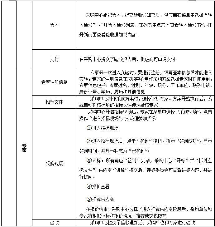 6、專家評標(biao):專家注冊信息(xi)、資質申請、招標(biao)文件、采(cai)購(gou)現場、驗收(shou)