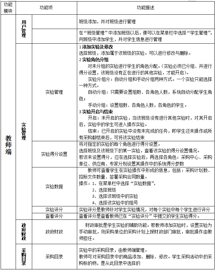 2、實(shi)驗(yan)由教師創建并設(she)(she)置(zhi),學生(sheng)分(fen)(fen)別扮演了采購(gou)活動(dong)中(zhong)的采購(gou)單位、采購(gou)中(zhong)心、供應商、專家四種角(jiao)色。實(shi)驗(yan)分(fen)(fen)組(zu)分(fen)(fen):自動(dong)分(fen)(fen)組(zu)和手(shou)動(dong)分(fen)(fen)組(zu)兩種方式。自動(dong)分(fen)(fen)組(zu):只需要(yao)設(she)(she)置(zhi)組(zu)數、各(ge)角(jiao)色人數,系統自動(dong)分(fen)(fen)配學生(sheng)角(jiao)色;手(shou)動(dong)分(fen)(fen)組(zu):設(she)(she)置(zhi)組(zu)數、各(ge)角(jiao)色人數,各(ge)角(jiao)色的學生(sheng)。