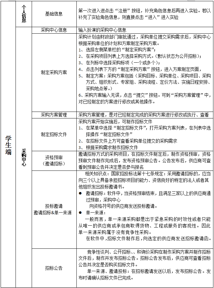 3、軟件模擬了公開招(zhao)標、邀請招(zhao)標、競爭性談判、單一來源、詢價采(cai)(cai)(cai)購(gou)(gou)五種方(fang)式的采(cai)(cai)(cai)購(gou)(gou)流程(cheng),嚴格(ge)按照政府采(cai)(cai)(cai)購(gou)(gou)法的要(yao)求和流程(cheng),并結合政府采(cai)(cai)(cai)購(gou)(gou)的實際操作,區分每一種采(cai)(cai)(cai)購(gou)(gou)方(fang)式的差別。