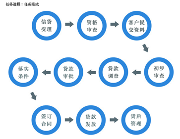 實(shi)(shi)訓主體(ti)分五類流程:短期(qi)貸款(kuan)(kuan)(kuan)、長期(qi)貸款(kuan)(kuan)(kuan)、票據貼現、個人住(zhu)房抵押貸款(kuan)(kuan)(kuan)、個人汽車(che)消費貸款(kuan)(kuan)(kuan)。提(ti)供靈活的業(ye)務流程控制,包(bao)括信貸受理(li)(li)、資格審查(cha)、貸款(kuan)(kuan)(kuan)調查(cha)、貸款(kuan)(kuan)(kuan)審批、落實(shi)(shi)條件、簽(qian)訂合同(tong)、貸款(kuan)(kuan)(kuan)發放、貸后管理(li)(li)等步(bu)驟。