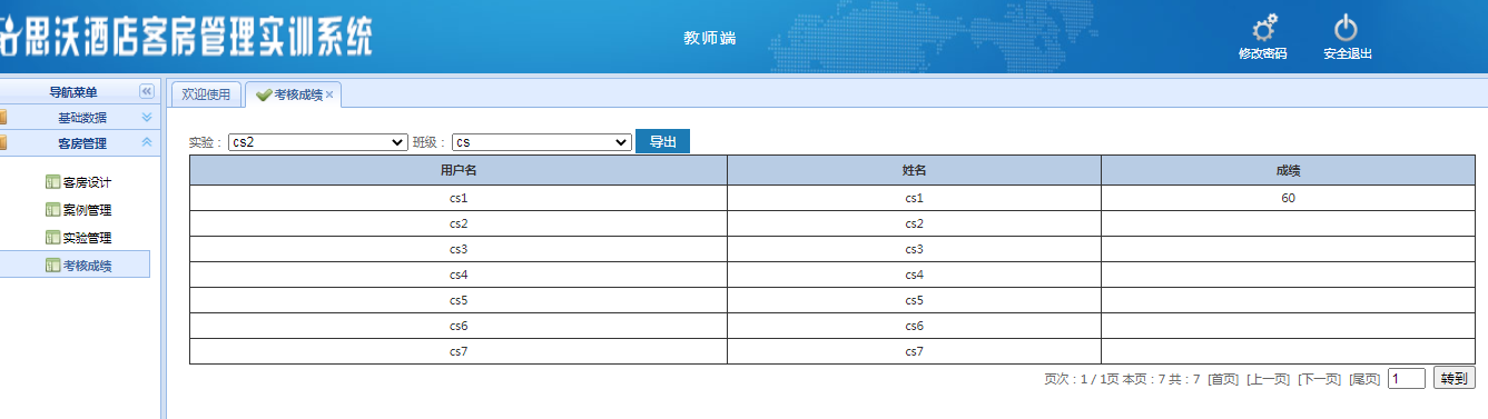 教(jiao)師登陸界面:基礎數據(ju)、客房管理,在線考試,資源拓展每個(ge)大模(mo)塊(kuai)下分別有相應的子模(mo)塊(kuai)。