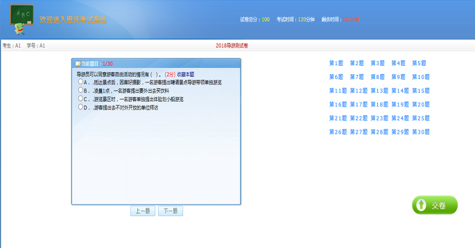 支持整(zheng)版作答(題目全屏顯示)、單題作答(一屏一題顯示)二種考試(shi)模式(shi)。