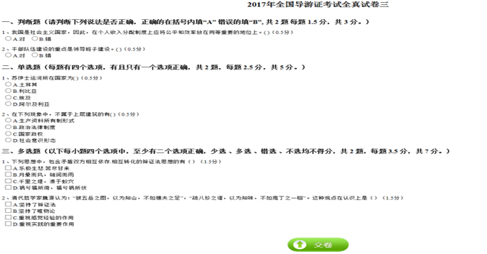 提供對試卷存在(zai)的客(ke)觀題(ti)(如判斷題(ti)、單選題(ti)、多選題(ti)等),系統自動評分。