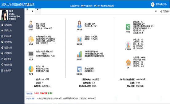 思沃大(da)學生創(chuang)(chuang)業(ye)(ye)(ye)(ye)(ye)模(mo)擬(ni)實(shi)訓平臺系(xi)統從(cong)大(da)學生創(chuang)(chuang)業(ye)(ye)(ye)(ye)(ye)的(de)(de)(de)現狀分(fen)(fen)析(xi),將創(chuang)(chuang)業(ye)(ye)(ye)(ye)(ye)教育(yu)的(de)(de)(de)內容(rong)以(yi)及(ji)因素(su)滲透在(zai)專業(ye)(ye)(ye)(ye)(ye)實(shi)踐教學中(zhong),并根據創(chuang)(chuang)業(ye)(ye)(ye)(ye)(ye)教育(yu)的(de)(de)(de)目(mu)標及(ji)內容(rong)設(she)置較(jiao)完(wan)善的(de)(de)(de)創(chuang)(chuang)業(ye)(ye)(ye)(ye)(ye)實(shi)踐體(ti)系(xi)。軟件模(mo)擬(ni)交互(hu)思想(xiang),采用國際(ji)先進(jin)的(de)(de)(de)計(ji)(ji)算機仿真(zhen)技術,仿真(zhen)模(mo)擬(ni)虛擬(ni)市場(chang)環境(jing)、市場(chang)調(diao)查以(yi)及(ji)整(zheng)個(ge)市場(chang)競爭結構。學生通(tong)過軟件學習(xi)創(chuang)(chuang)業(ye)(ye)(ye)(ye)(ye)心(xin)理(li)學、創(chuang)(chuang)業(ye)(ye)(ye)(ye)(ye)講堂、網上創(chuang)(chuang)業(ye)(ye)(ye)(ye)(ye)、創(chuang)(chuang)業(ye)(ye)(ye)(ye)(ye)準備等創(chuang)(chuang)業(ye)(ye)(ye)(ye)(ye)知識(shi),撰寫一份(fen)創(chuang)(chuang)業(ye)(ye)(ye)(ye)(ye)計(ji)(ji)劃書,投入到創(chuang)(chuang)業(ye)(ye)(ye)(ye)(ye)實(shi)戰(zhan)中(zhong)。創(chuang)(chuang)業(ye)(ye)(ye)(ye)(ye)實(shi)戰(zhan)分(fen)(fen)為公(gong)司(si)注冊和實(shi)戰(zhan)運營。公(gong)司(si)注冊采用Flash動畫(hua)模(mo)式,模(mo)擬(ni)公(gong)司(si)注冊的(de)(de)(de)整(zheng)個(ge)流程。實(shi)戰(zhan)運營是整(zheng)個(ge)系(xi)統的(de)(de)(de)主體(ti),將全(quan)國分(fen)(fen)為七個(ge)區(qu)(qu)(qu)(qu)(qu)(qu)域:東北地(di)區(qu)(qu)(qu)(qu)(qu)(qu)、華(hua)(hua)北地(di)區(qu)(qu)(qu)(qu)(qu)(qu)、西(xi)北地(di)區(qu)(qu)(qu)(qu)(qu)(qu)、華(hua)(hua)東地(di)區(qu)(qu)(qu)(qu)(qu)(qu)、西(xi)南地(di)區(qu)(qu)(qu)(qu)(qu)(qu)、華(hua)(hua)中(zhong)地(di)區(qu)(qu)(qu)(qu)(qu)(qu)、華(hua)(hua)南地(di)區(qu)(qu)(qu)(qu)(qu)(qu)。系(xi)統模(mo)擬(ni)公(gong)司(si)內部與外在(zai)市場(chang)之間的(de)(de)(de)矛(mao)盾,創(chuang)(chuang)業(ye)(ye)(ye)(ye)(ye)者通(tong)過各種(zhong)調(diao)查、決(jue)策解決(jue)企業(ye)(ye)(ye)(ye)(ye)市場(chang)運營過程中(zhong)可能遇到的(de)(de)(de)各種(zhong)情況。在(zai)區(qu)(qu)(qu)(qu)(qu)(qu)域需求飽和后擴大(da)市場(chang),對其中(zhong)出(chu)現的(de)(de)(de)問題和運營結果進(jin)行分(fen)(fen)析(xi)與評估,培養大(da)學生正確的(de)(de)(de)人(ren)生觀、價值觀、就業(ye)(ye)(ye)(ye)(ye)觀,提高大(da)學生勇(yong)于創(chuang)(chuang)業(ye)(ye)(ye)(ye)(ye)的(de)(de)(de)精神,讓大(da)學生有(you)良好的(de)(de)(de)創(chuang)(chuang)業(ye)(ye)(ye)(ye)(ye)意識(shi),增(zeng)強大(da)學生自主創(chuang)(chuang)業(ye)(ye)(ye)(ye)(ye)能力。