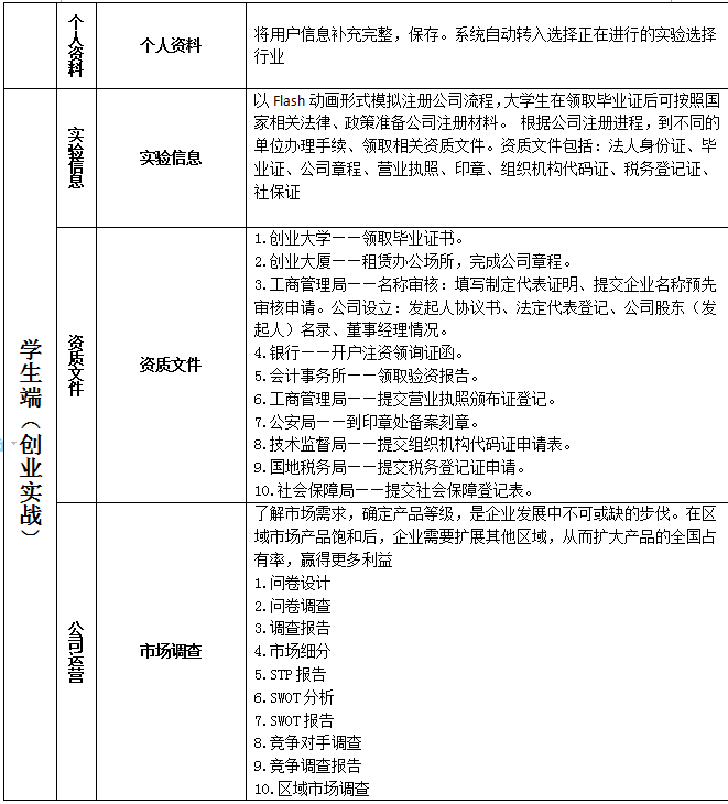 學生端模擬現實創業的(de)步驟及相關流程進(jin)行創業實驗。