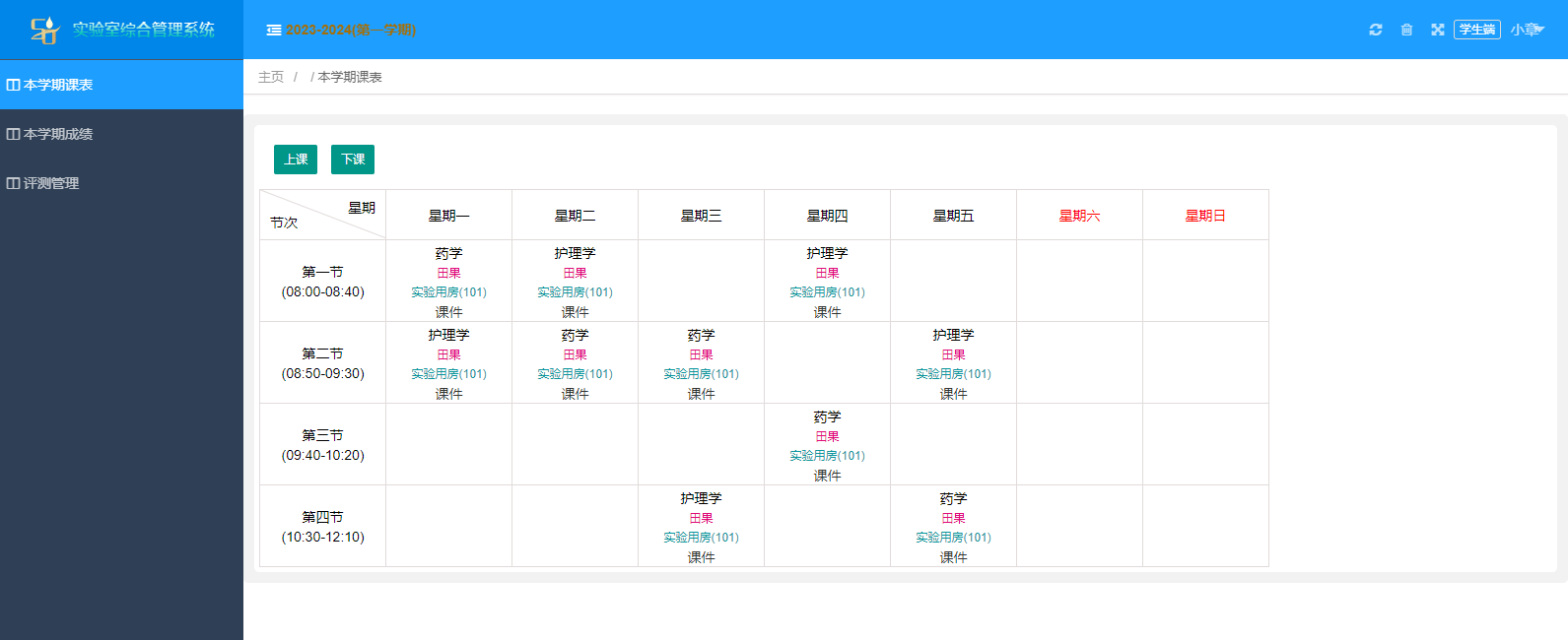 本(ben)學(xue)期課表(biao),本(ben)學(xue)期成績,評(ping)測管理。