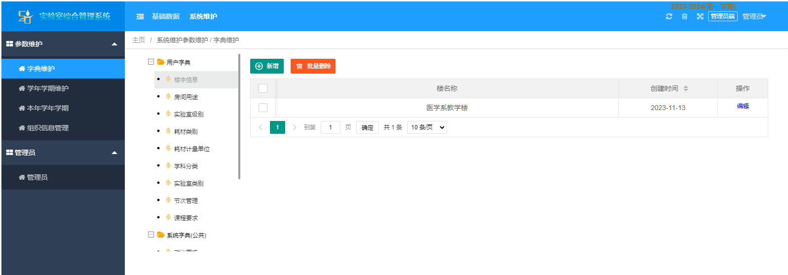 用戶(hu)字典(樓宇信(xin)息(xi),房間用途,實驗(yan)室級別(bie),耗材類別(bie),耗材計(ji)量單位,學科(ke)分(fen)類,實驗(yan)室類別(bie),節(jie)次管理(li),課程要求)